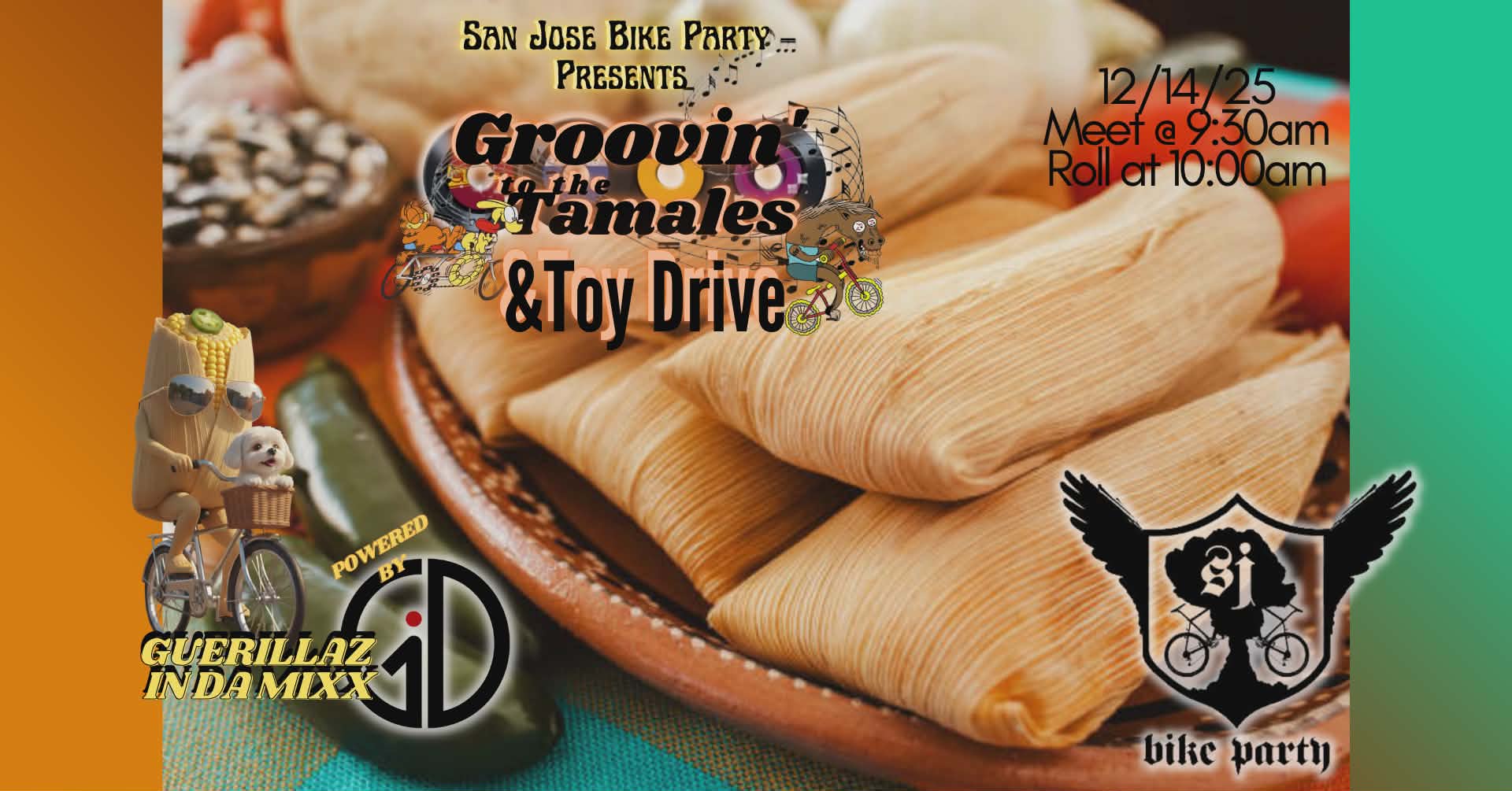 Join us at Backesto Park on Sunday, December 14 for the San Jose Bike Party TAMALE RIDE and Toy Drive!