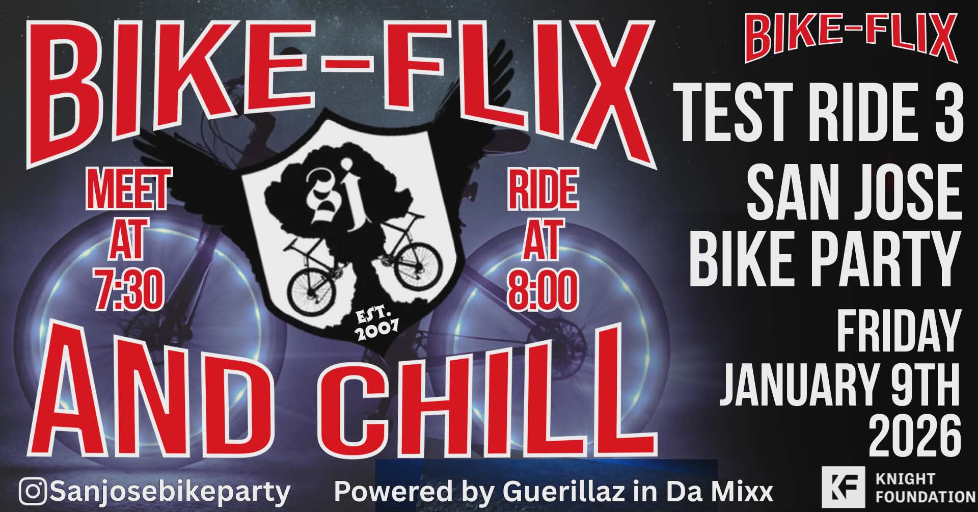 Everyone is welcome to attend this event, but please, read and follow our “How We Ride” guidelines to keep everyone safe and to keep San Jose Bike Party rolling!  We share the road with other vehicles and we frequently ride in the dark.